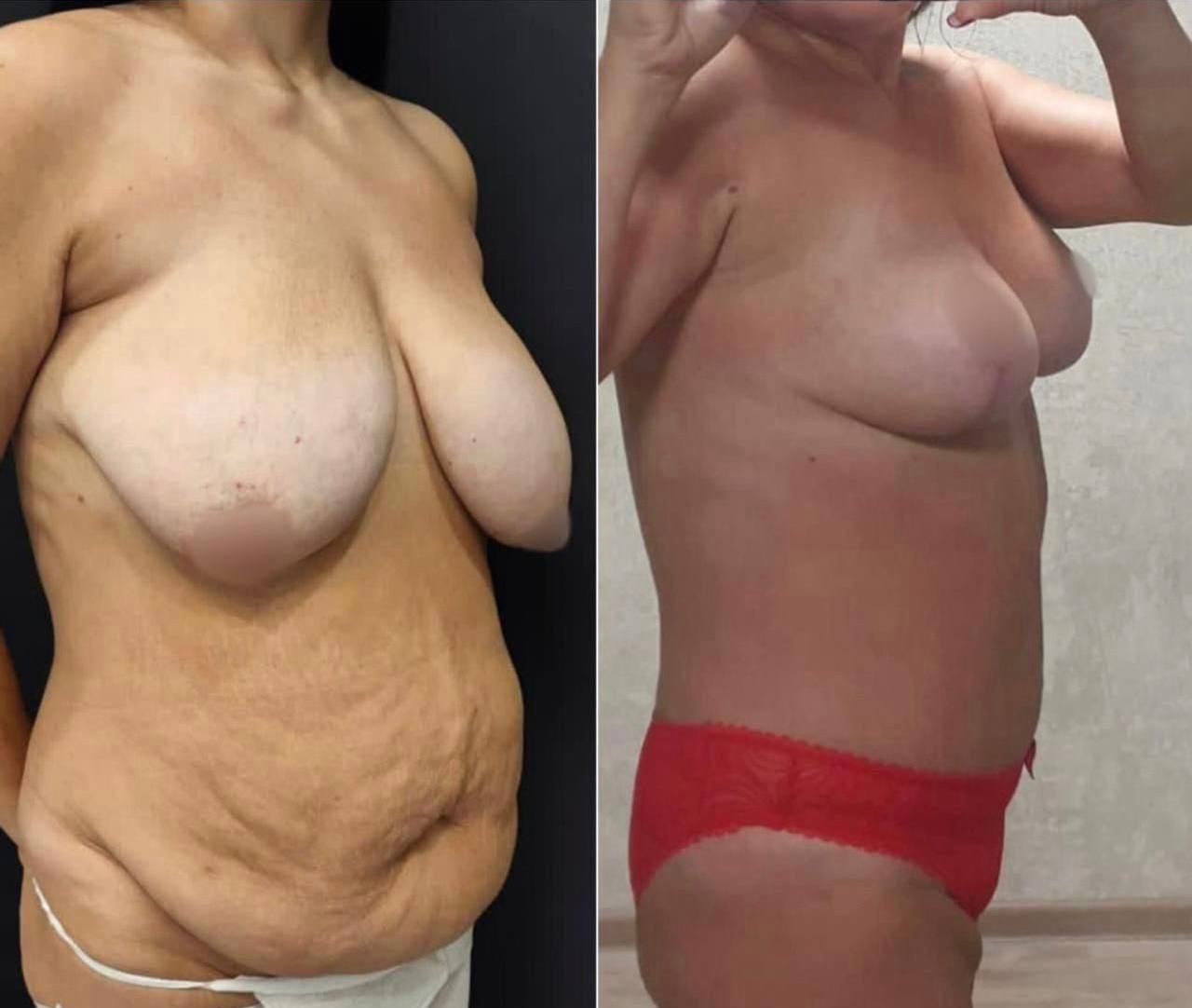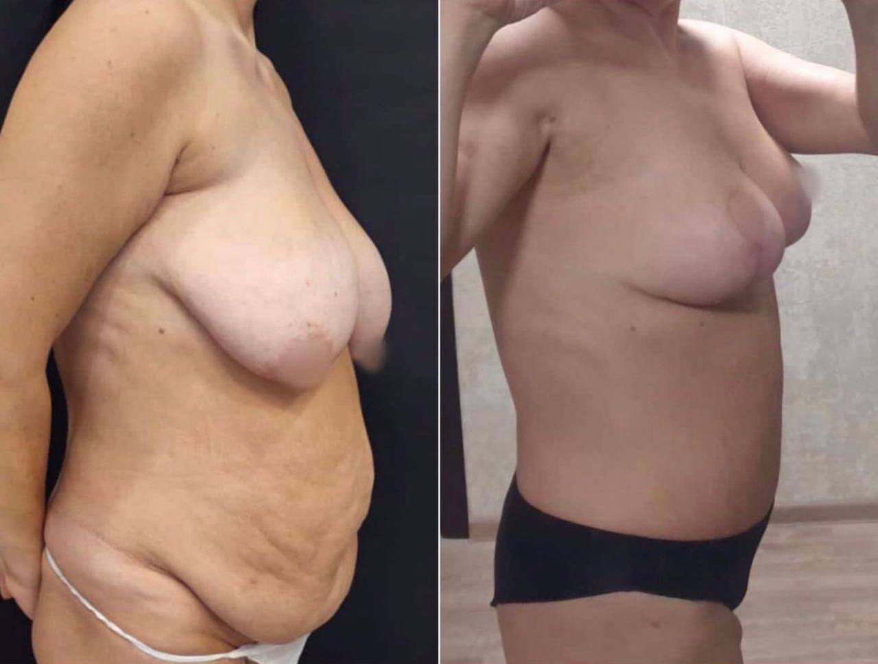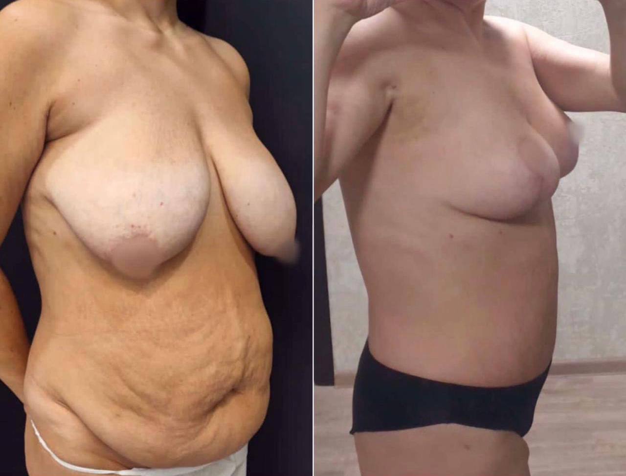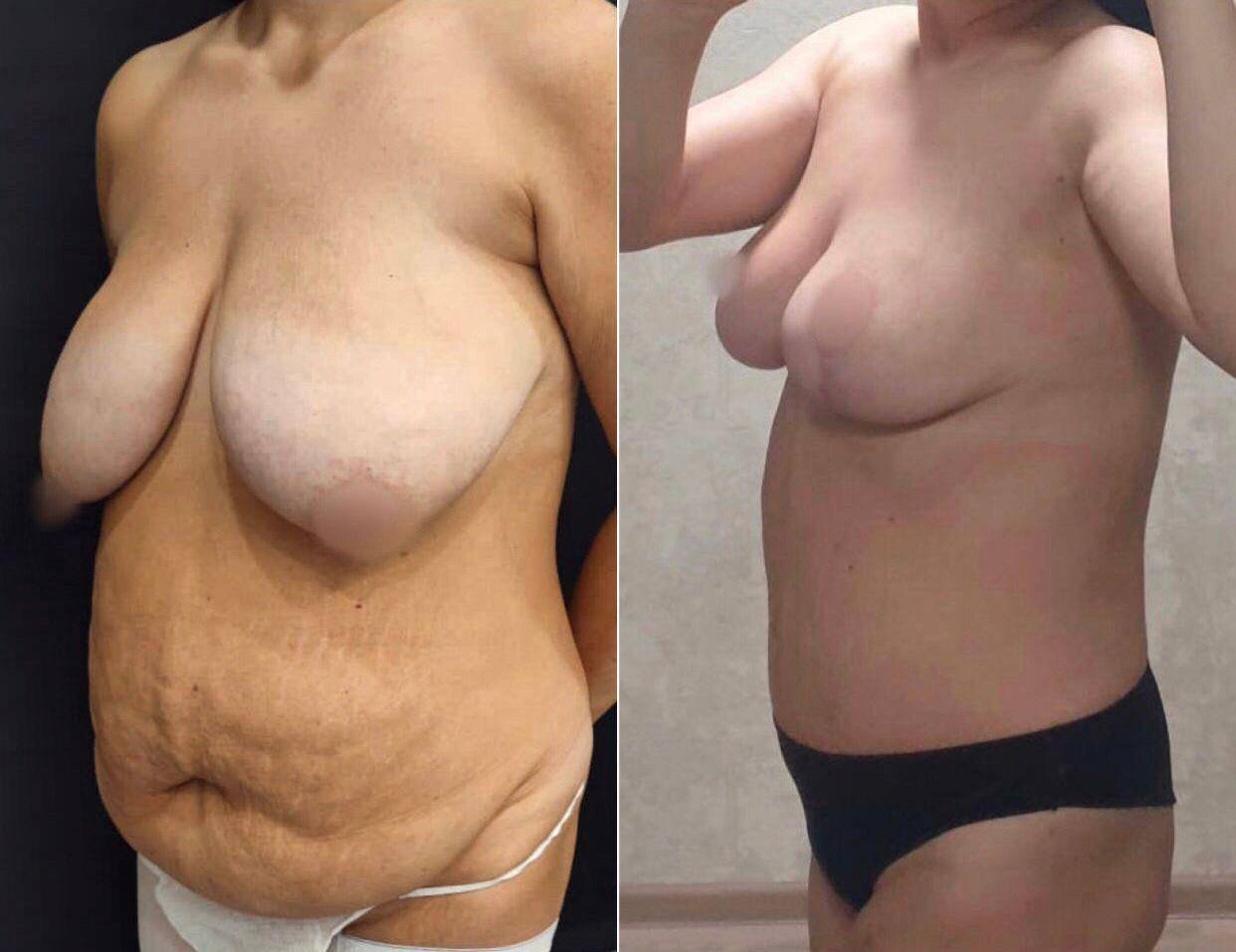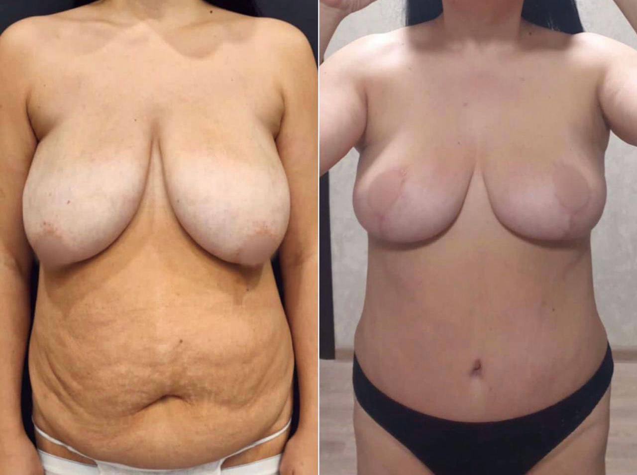 Выполнена маммопластика без имплантов и абдоминопластика.
