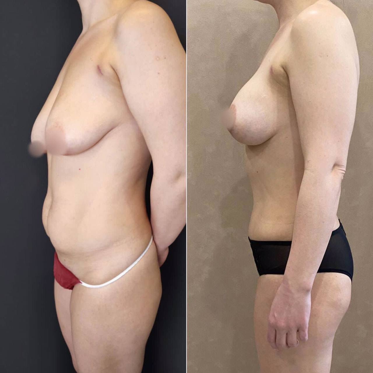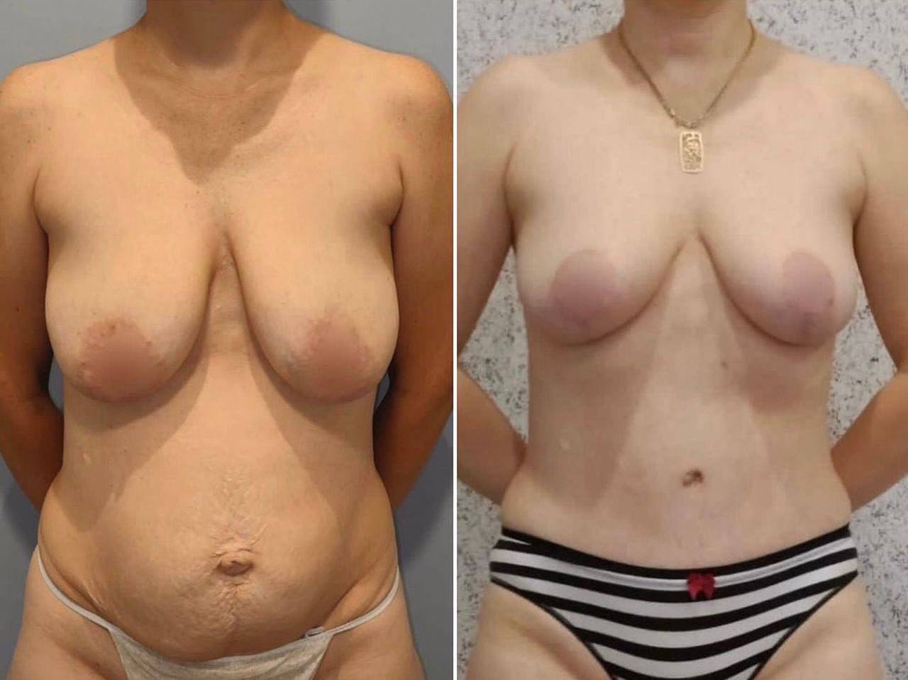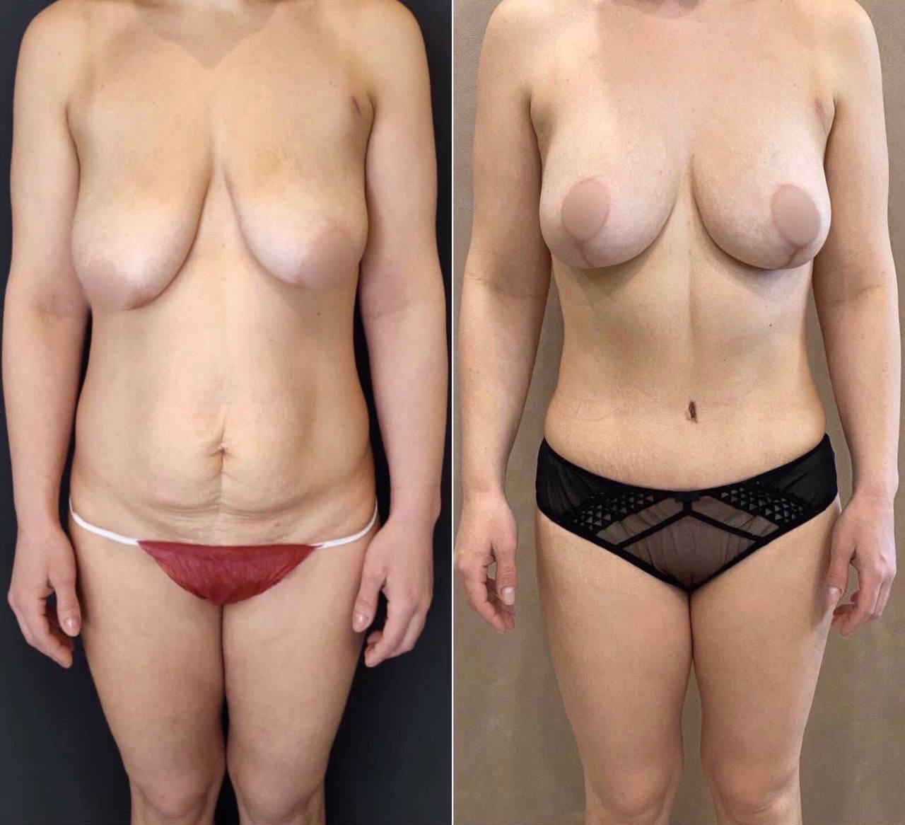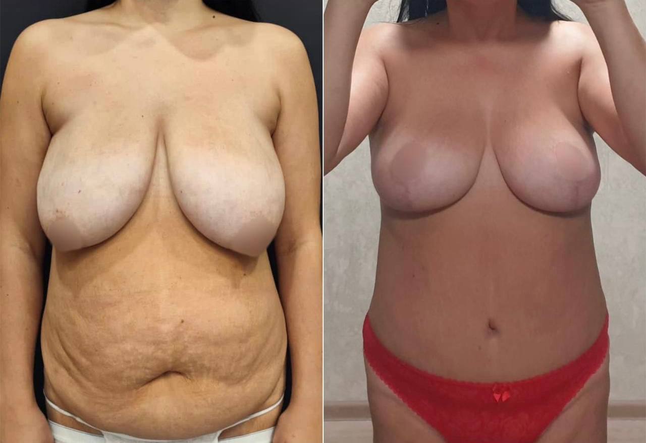 Выполнена маммопластика без имплантов и абдоминопластика.