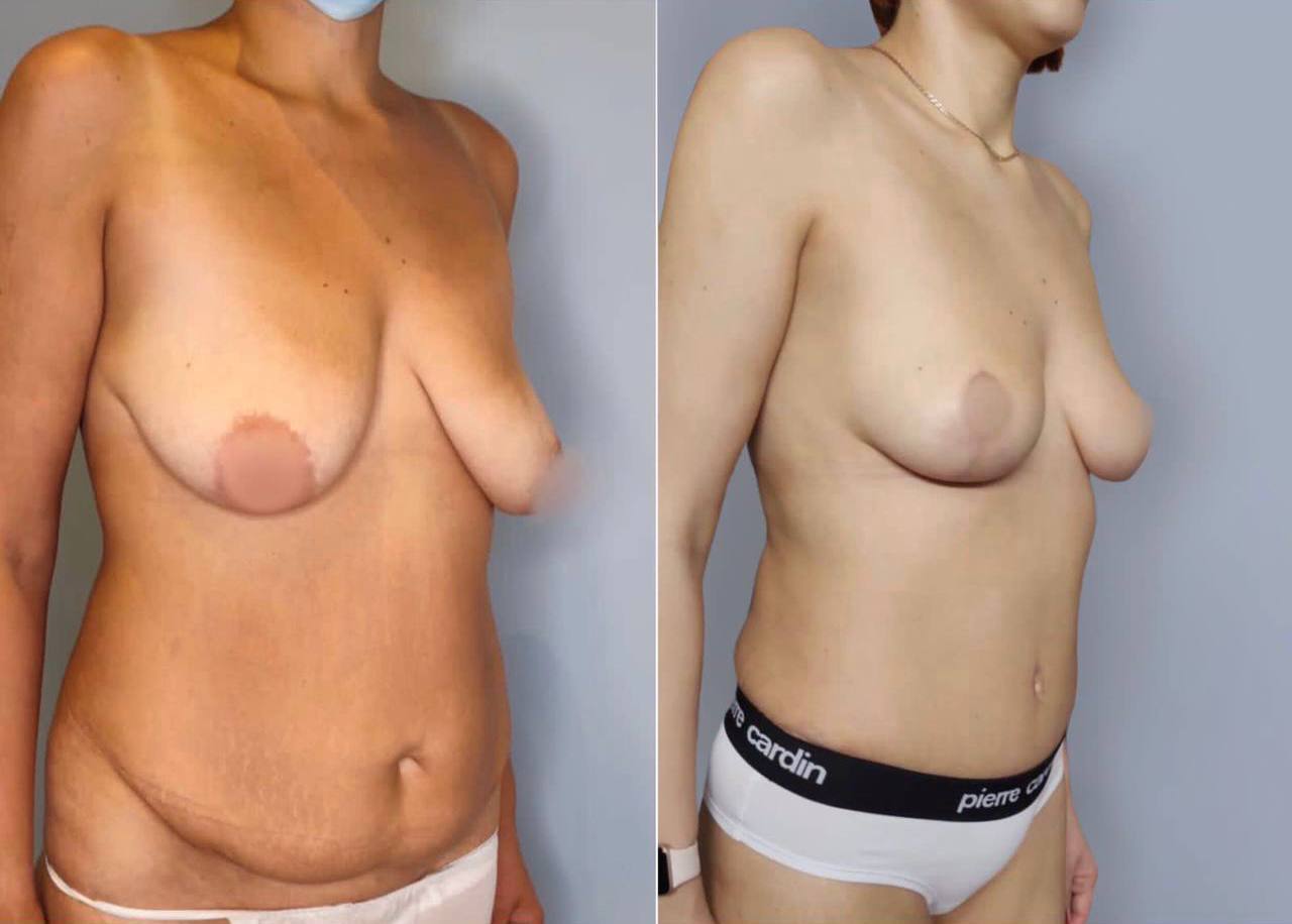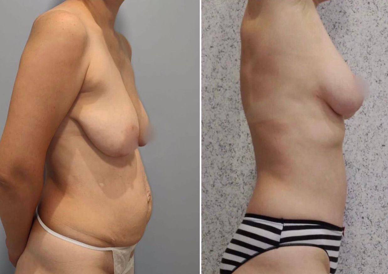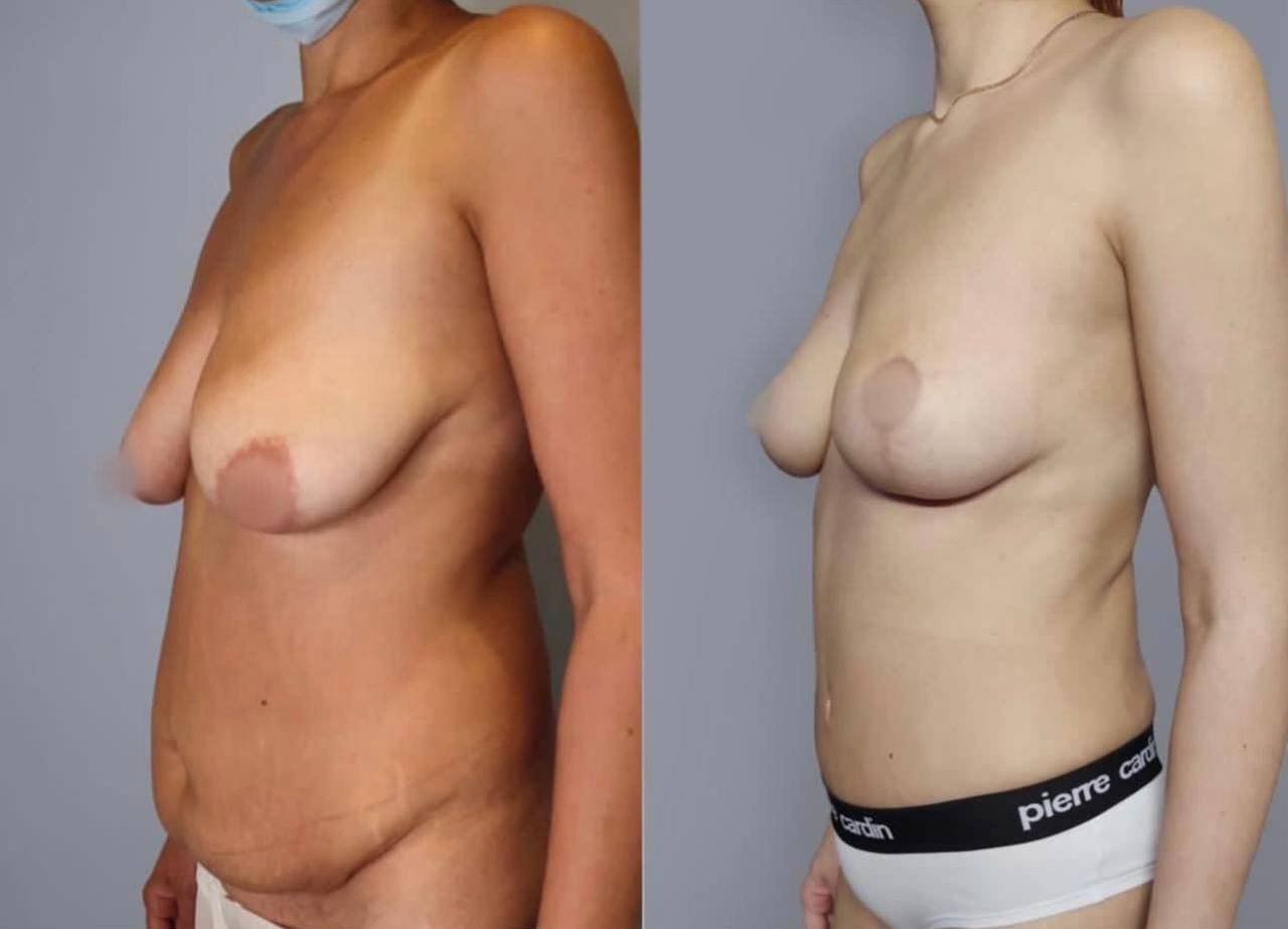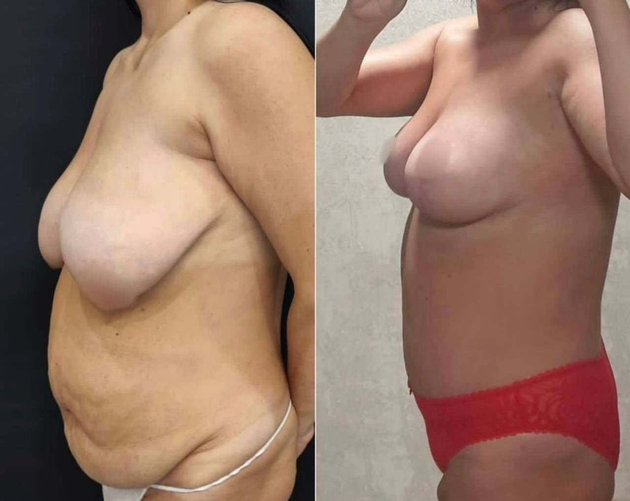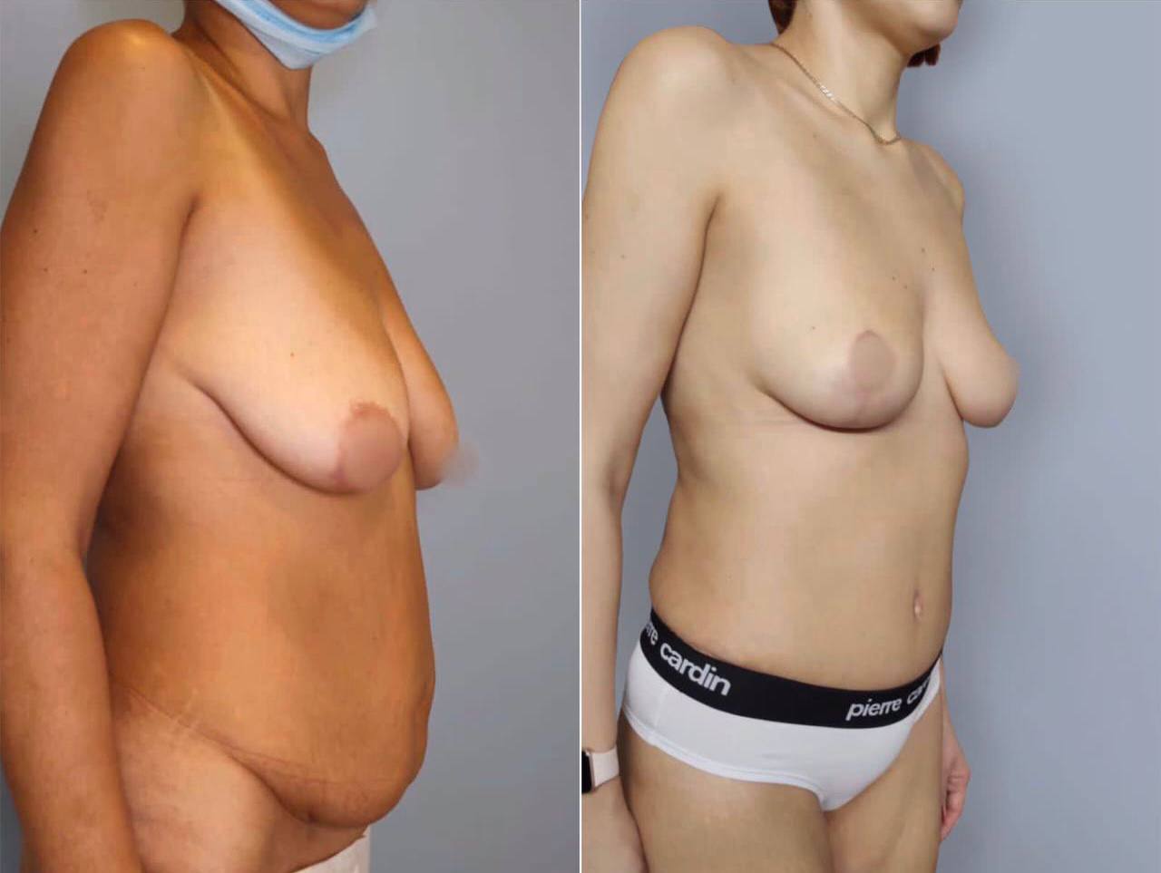 Выполнена маммопластика без имплантов и абдоминопластика.