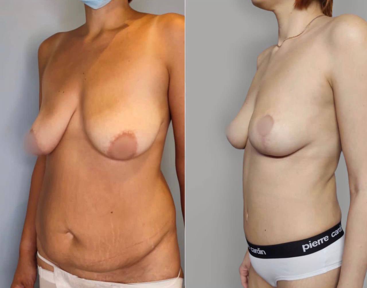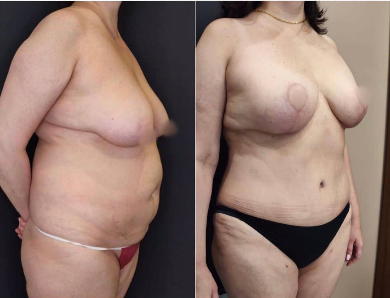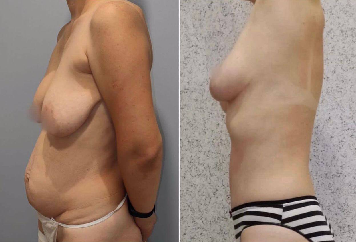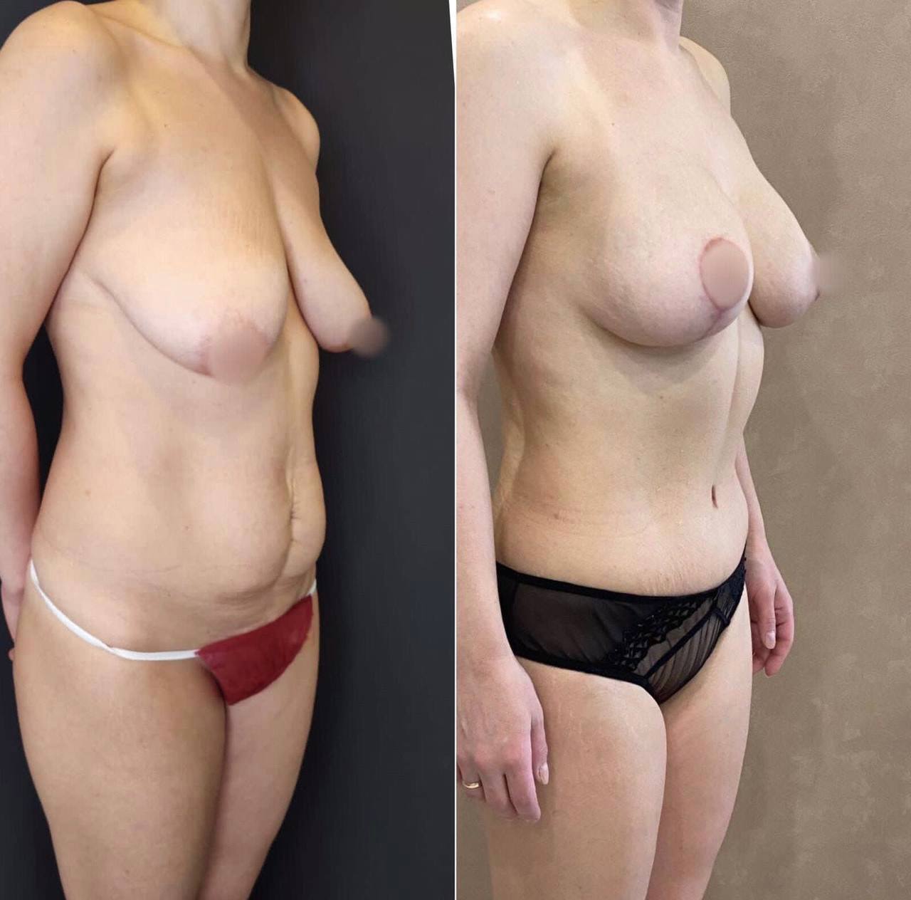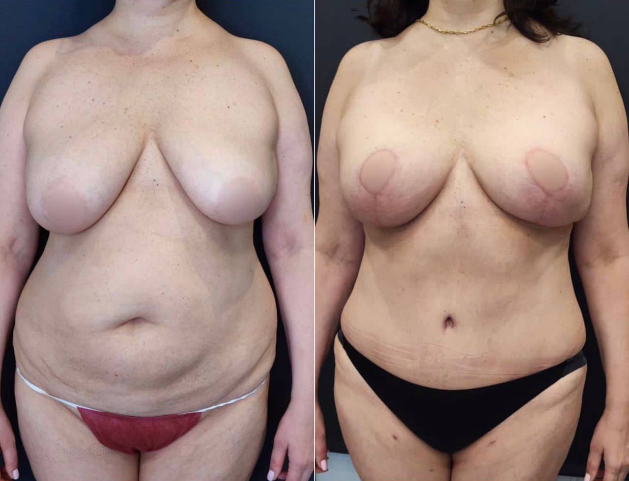 Выполнена маммопластика без имплантов и абдоминопластика.