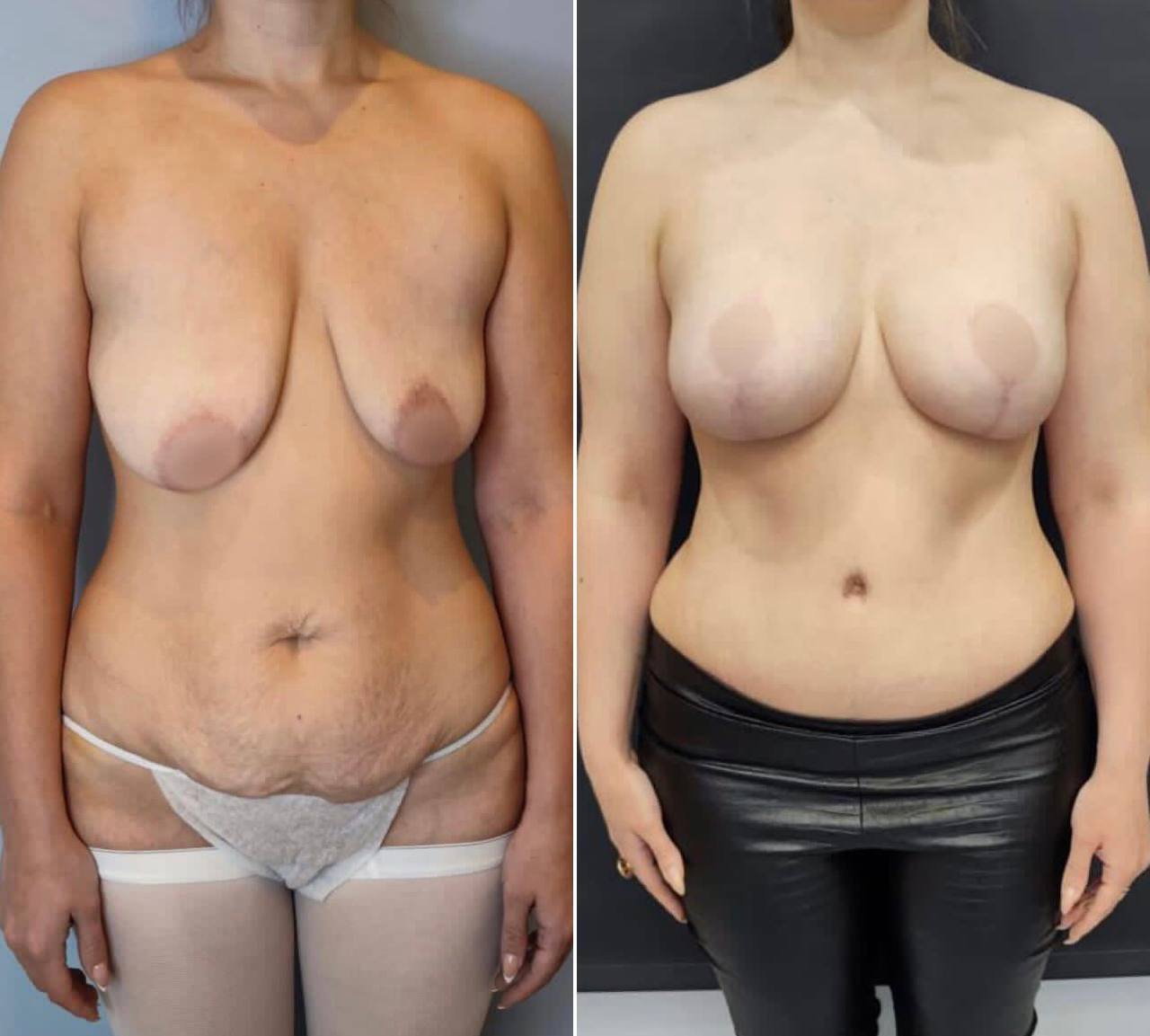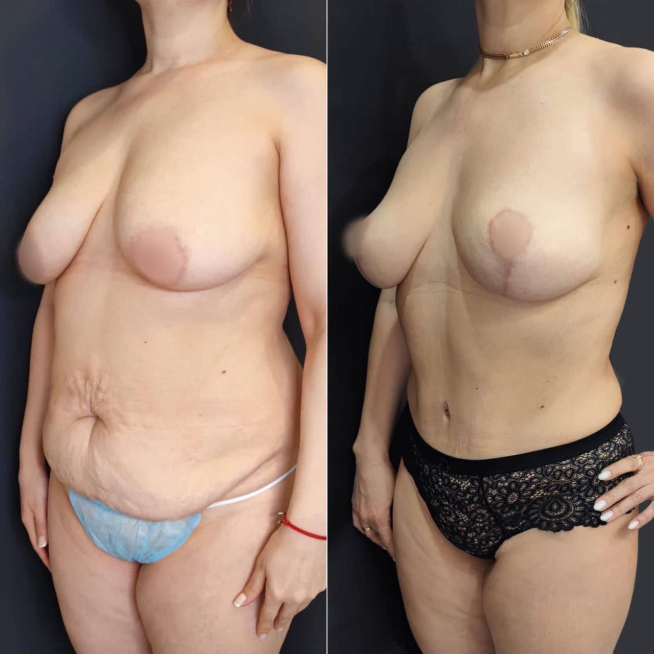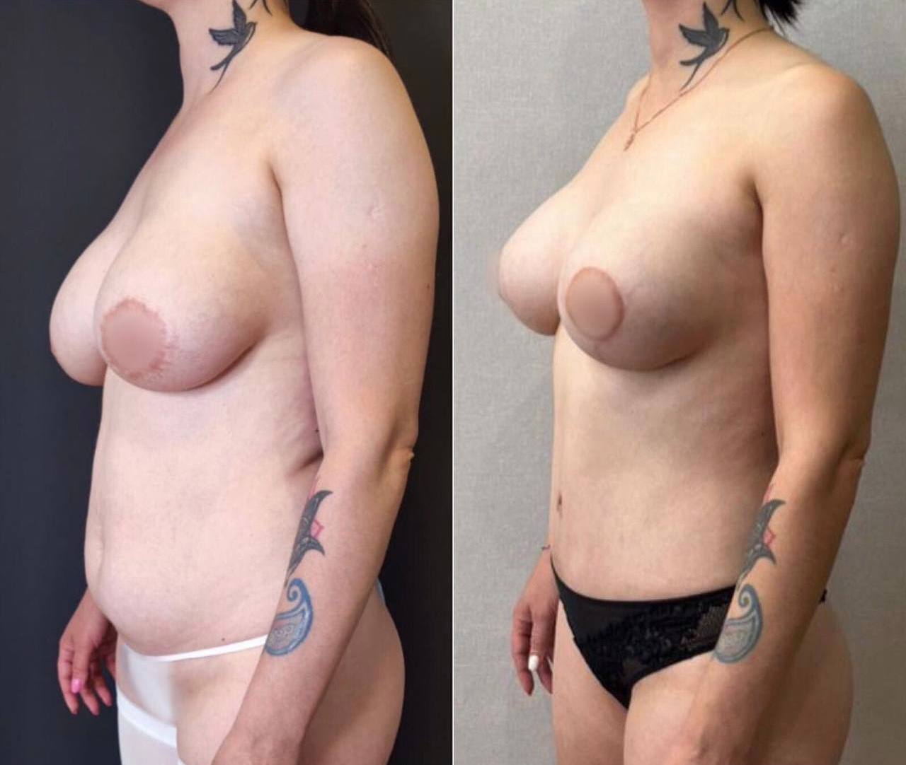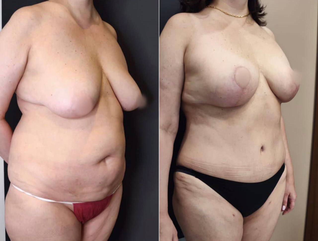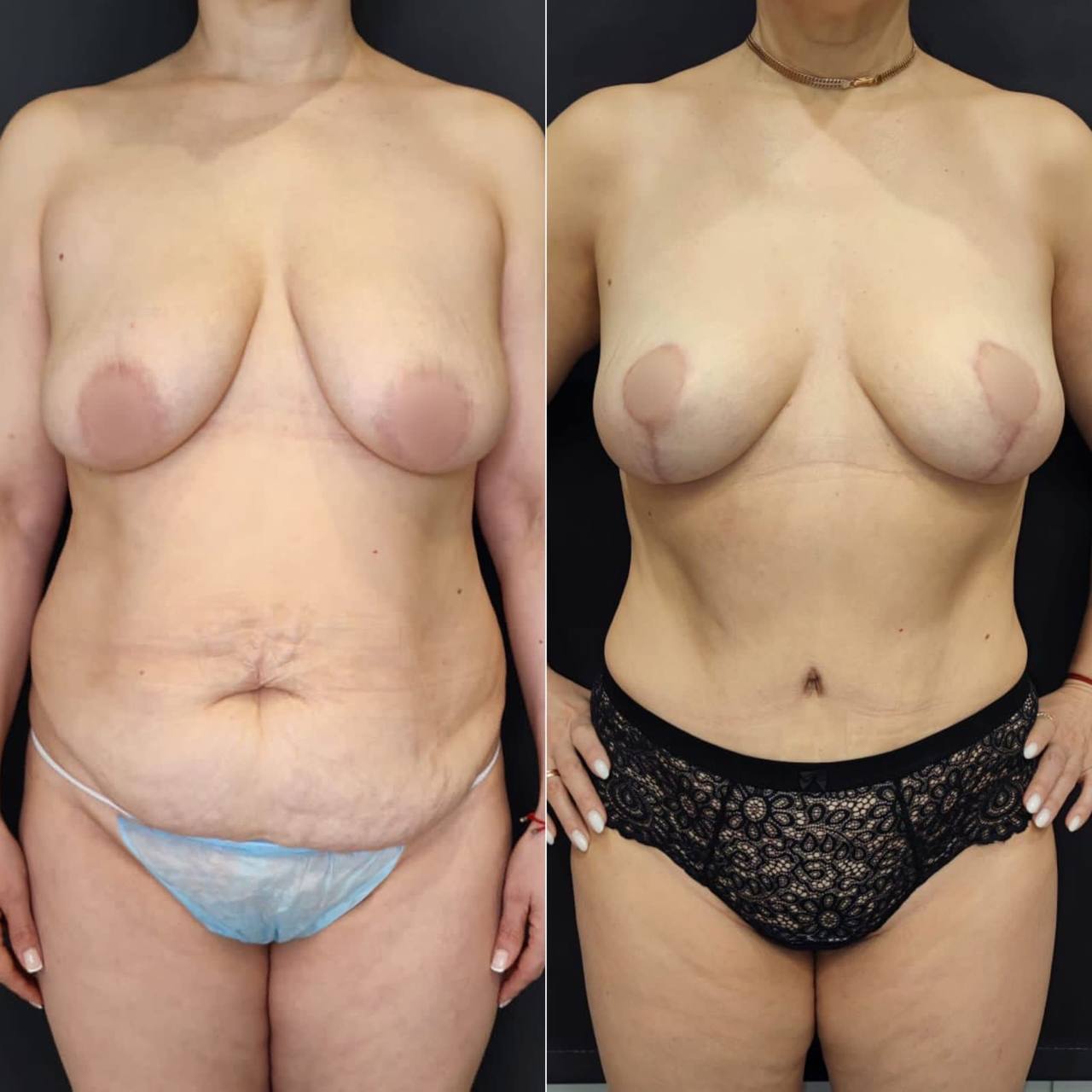 Выполнена маммопластика без имплантов и абдоминопластика.