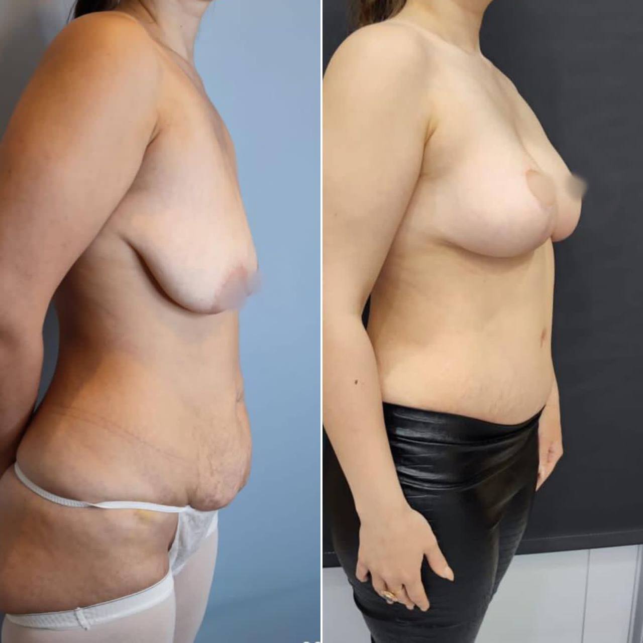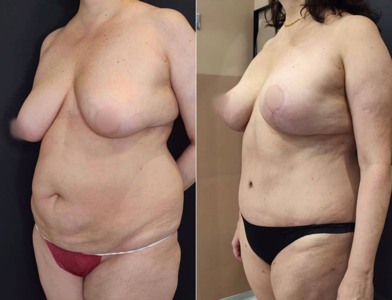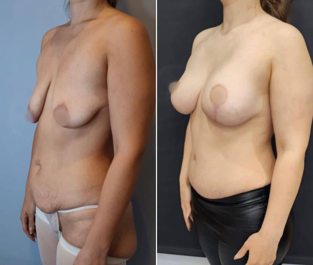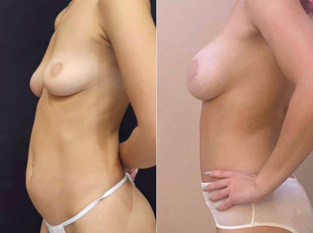 Выполнена маммопластика без имплантов и абдоминопластика.