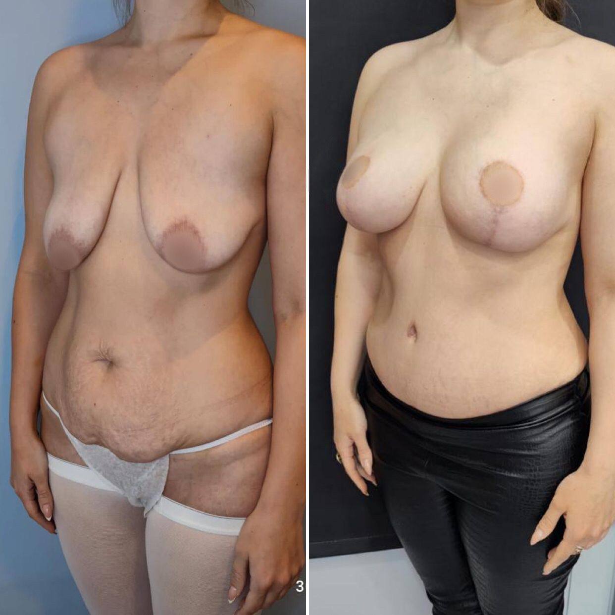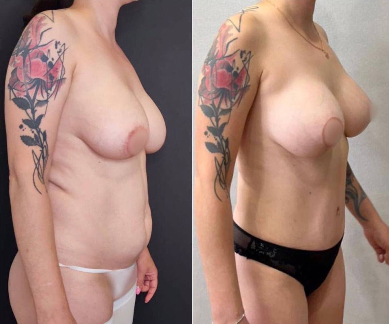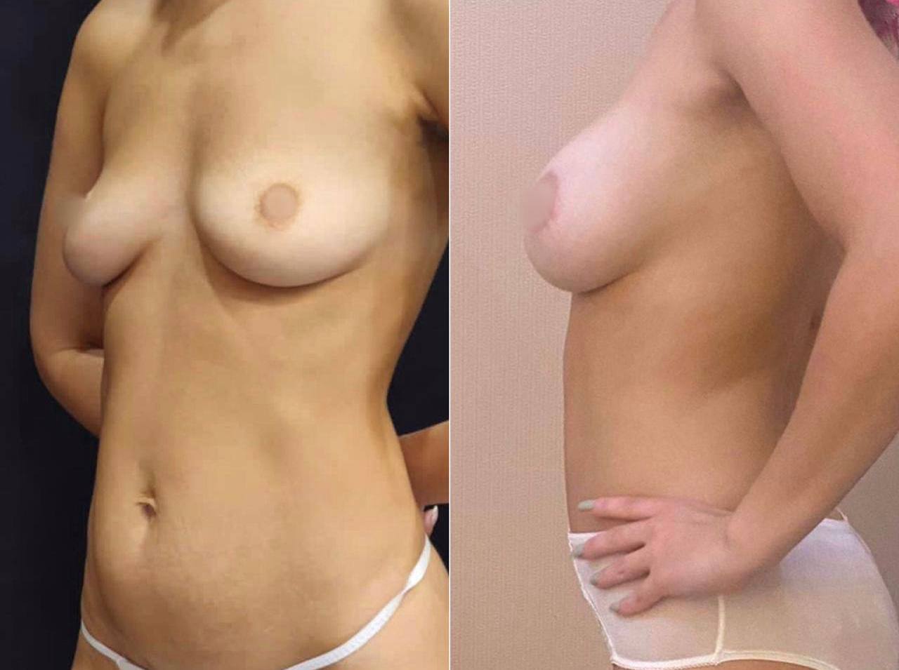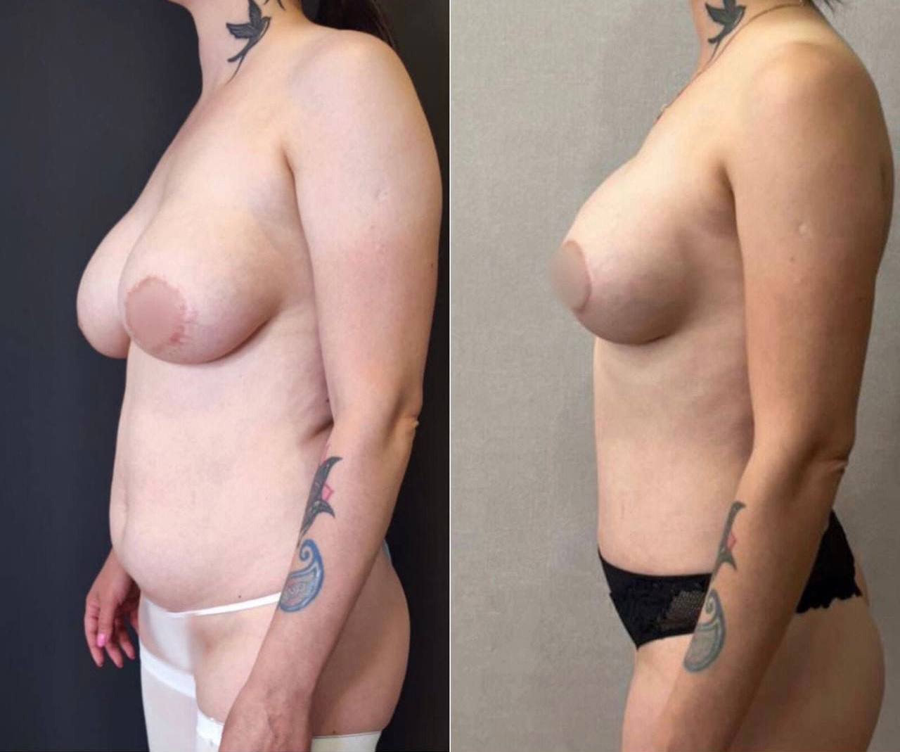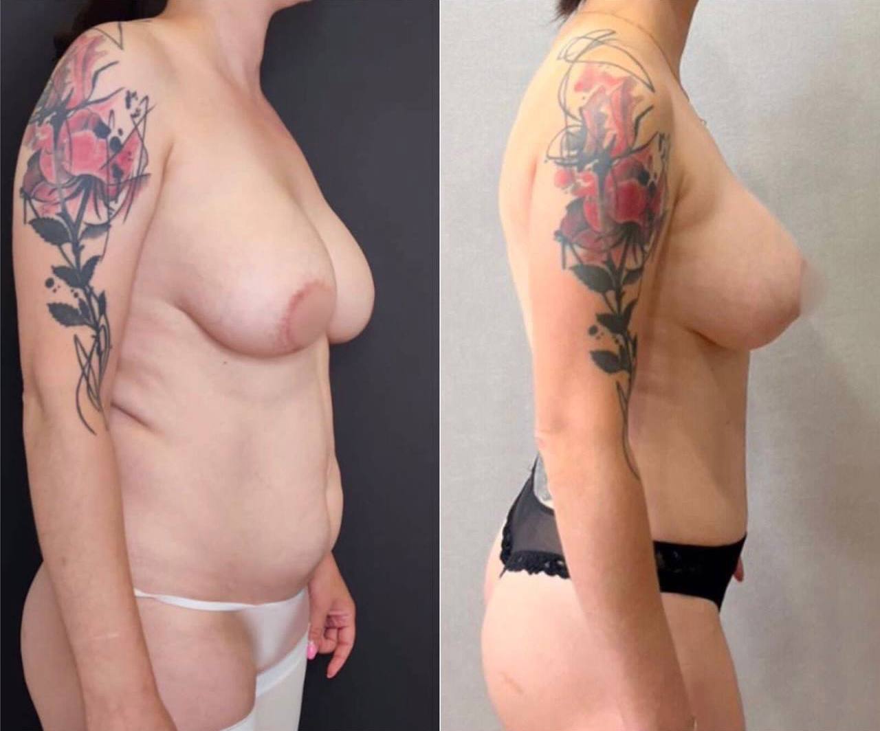 Выполнена маммопластика без имплантов и абдоминопластика.