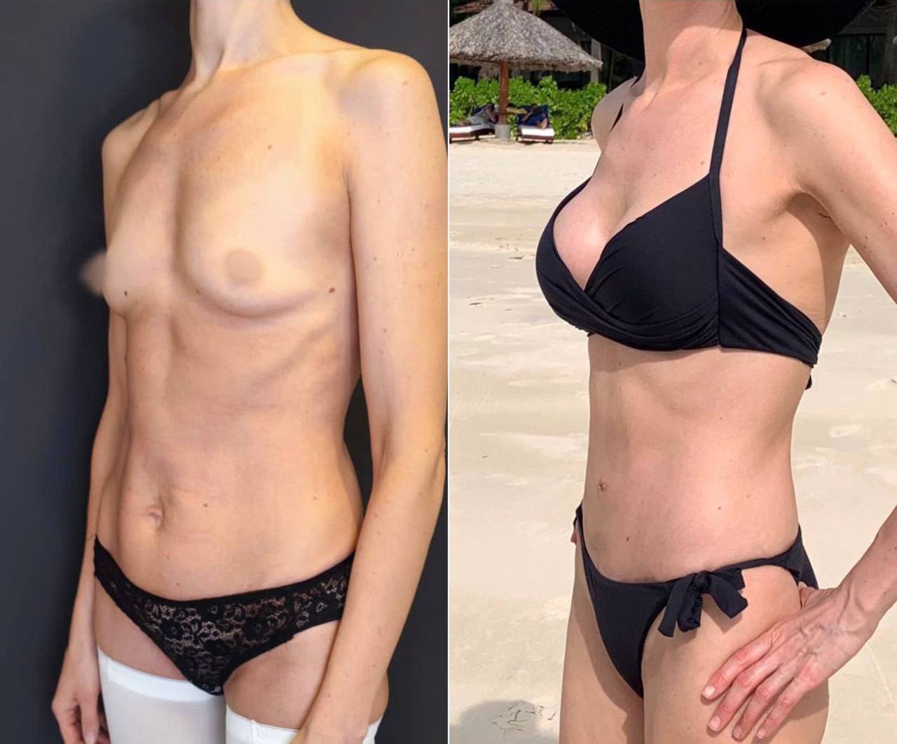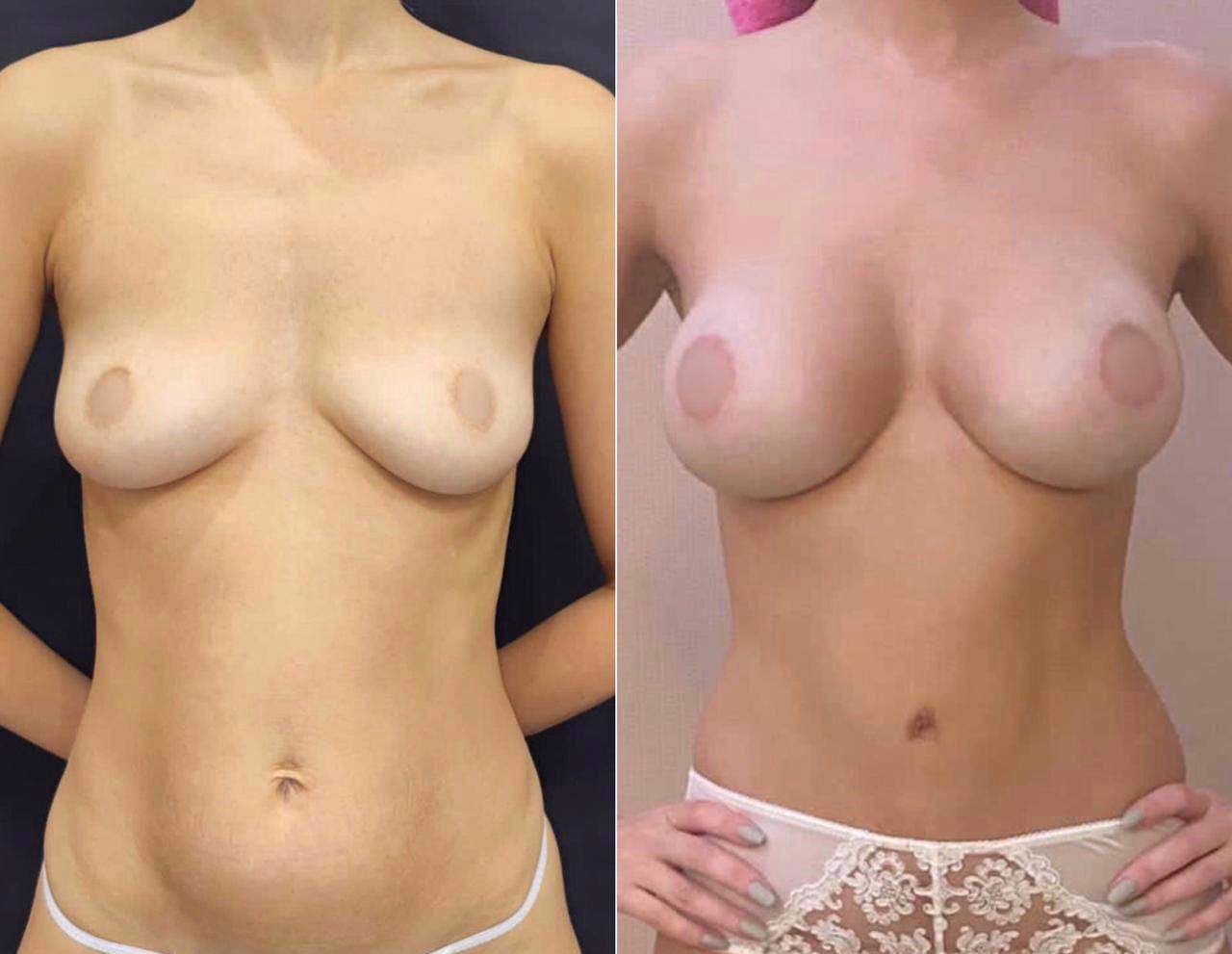 Пациентке ранее была выполнена маммопластика в другой клинике. В результате: