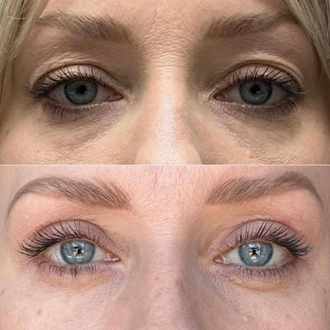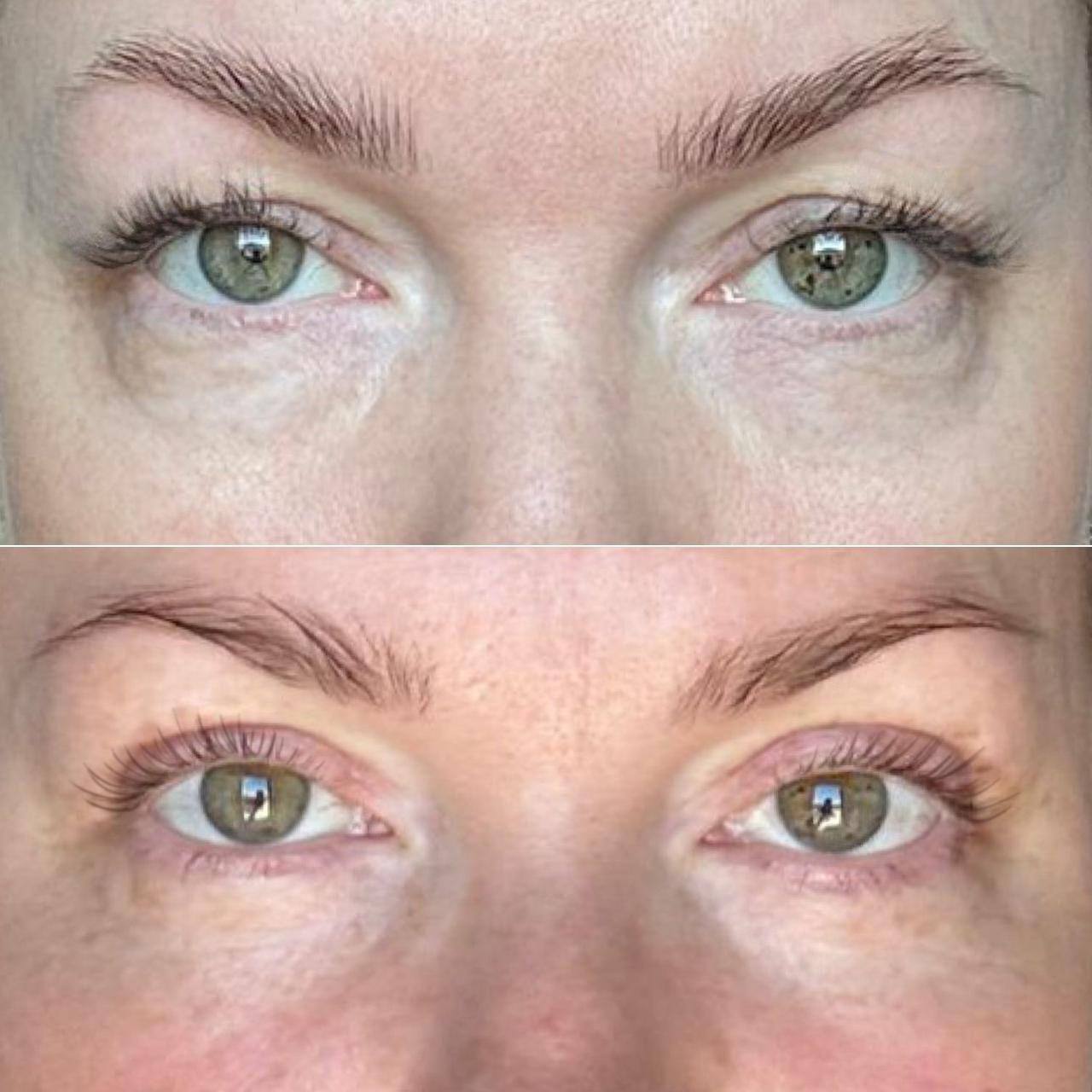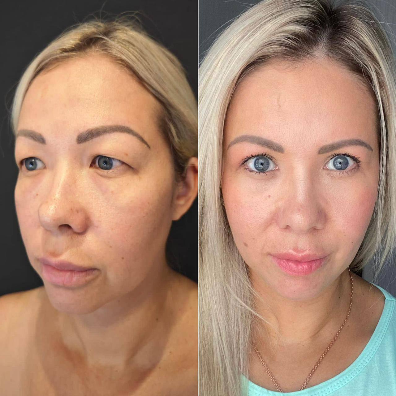 Фото с закрытыми глазками показываю для демонстрации отсутствия избытков кожи верхних век на фото «после». А также толщины рубчиков – их практически не видно.