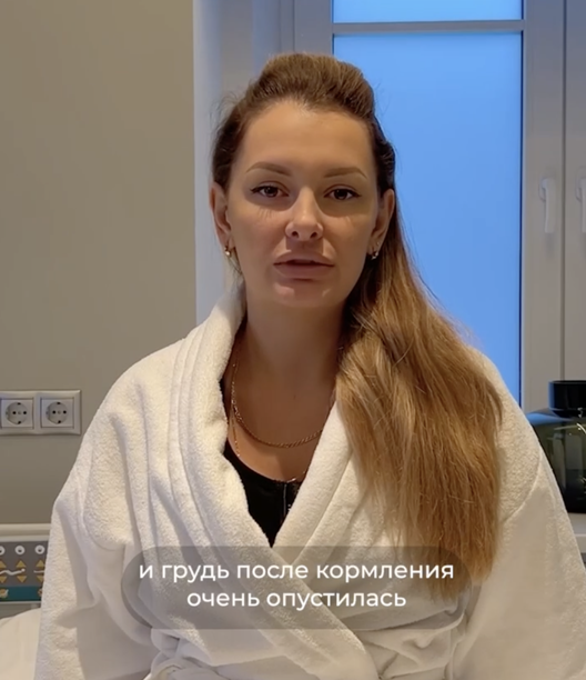«После первой маммопластики у меня были вторые роды, и грудь после кормления очень опустилась. Захотелось вернуть красивую девичью грудь, и я вновь обратилась к доктору»