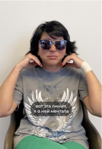 «После операции взяла телефон, посмотрела на себя, мне понравилось) Хотя ещё есть отек, но я просто обалдела. Вот эта линия подбородка, я о ней мечтала. Мне кажется, она сделана на 200%»