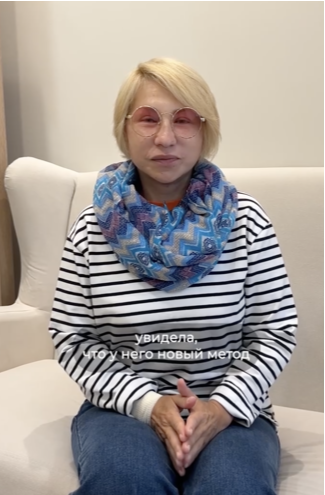 «Всё было именно так, как вы заявляли и обещали. На следующий день после операции утром я самостоятельно вымыла голову. И через некоторое время поехала в аэропорт. Прекрасно себя чувствовала, всё было безболезненно, бескровно и бесшовно. Ни одной нити нигде у меня не было. По прилету домой, продолжила вести обычный образ жизни, при этом много двигалась и каждое утро могла наблюдать, как стремительно сходят отёки с моего лица.